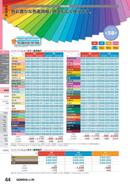 全58色8切紙厚0.19mm4切A4A3ノビ10枚入50枚入100枚入8切4切1袋(10枚入)1袋(100枚入)1袋(10枚入)1袋(100枚入)8-600-30938-600-31548-600-32158-600-32768-600-30948-600-31558-600-32168-600-32778-600-30968-600-31578-600-32188-600-32798-600-30978-600-31588-600-32198-600-32808-600-30988-600-31598-600-32208-600-32818-600-30998-600-31608-600-32218-600-32828-600-31008-600-31618-600-32228-600-32838-600-31018-600-31628-600-32238-600-32848-600-31028-600-31638-600-32248-600-32858-600-31038-600-31648-600-32258-600-32868-600-31048-600-31658-600-32268-600-32878-600-31058-600-31668-600-32278-600-32888-600-31068-600-31678-600-32288-600-32898-600-31078-600-31688-600-32298-600-32908-600-31088-600-31698-600-32308-600-32918-600-31098-600-31708-600-32318-600-32928-600-31108-600-31718-600-32328-600-32938-600-31118-600-31728-600-32338-600-32948-600-31128-600-31738-600-32348-600-32958-600-31138-600-31748-600-32358-600-32968-600-31148-600-31758-600-32368-600-32978-600-31158-600-31768-600-32378-600-32988-600-31168-600-31778-600-32388-600-32998-600-31178-600-31788-600-32398-600-33008-600-31198-600-31808-600-32418-600-33028-600-31208-600-31818-600-32428-600-33038-600-31218-600-31828-600-32438-600-3304オープン¥220¥242¥3,400¥1,173¥1,290オープン¥390¥429¥6,800¥2,250¥2,475色サイズ単位あかむらさきこいももときいろしゅいろちゃいろみかんこいきみどりあおはいいろむらさきももいろわかくさそらいろオリーブあかひまわりレモンあいいろみどりエメラルドこいこげちゃやまぶきいろぼたんいろあさぎいろこんいろくろえんじM価税抜税抜価格税込価格学習ペーパークラフト・素材イベント用品学習支援用品保育安全・安心OA・サプライ用品文具・事務用品日用品画用紙模造紙模造紙おりがみ・おりがみ・和紙和紙ノートノート学習帳学帳算数算理科・社会国語・漢字英習・その他その他連絡帳連帳横罫・横・縦罫縦罫方眼眼色サイズ単位クリームうすももうすだいだいきいろうすちゃいろうすみずいろしらちゃうすクリームあかるいはいいろあかるいあさぎサーモンラベンダーライトブルーメロンライトイエローピンクライムグリーンゆきミルクおうどいろみずいろきみどりだいだいぐんじょうこげちゃうすあおふじむらさきさくらM価税抜税抜価格税込価格8切4切1袋(10枚入)1袋(100枚入)1袋(10枚入)1袋(100枚入)8-600-30618-600-31228-600-31838-600-32448-600-30628-600-31238-600-31848-600-32458-600-30638-600-31248-600-31858-600-32468-600-30668-600-31278-600-31888-600-32498-600-30678-600-31288-600-31898-600-32508-600-30688-600-31298-600-31908-600-32518-600-30698-600-31308-600-31918-600-32528-600-30708-600-31318-600-31928-600-32538-600-30718-600-31328-600-31938-600-32548-600-30728-600-31338-600-31948-600-32558-600-30758-600-31368-600-31978-600-32588-600-30768-600-31378-600-31988-600-32598-600-30778-600-31388-600-31998-600-32608-600-30788-600-31398-600-32008-600-32618-600-30798-600-31408-600-32018-600-32628-600-30808-600-31418-600-32028-600-32638-600-46058-600-46118-600-46178-600-46238-600-30818-600-31428-600-32038-600-32648-600-30828-600-31438-600-32048-600-32658-600-30838-600-31448-600-32058-600-32668-600-30848-600-31458-600-32068-600-32678-600-30858-600-31468-600-32078-600-32688-600-30868-600-31478-600-32088-600-32698-600-30878-600-31488-600-32098-600-32708-600-30888-600-31498-600-32108-600-32718-600-30898-600-31508-600-32118-600-32728-600-30908-600-31518-600-32128-600-32738-600-30918-600-31528-600-32138-600-3274オープン¥220¥242¥3,400¥1,173¥1,290オープン¥390¥429¥6,800¥2,250¥2,475●紙寸法/8切:392×271mm、4切:392×542mm●紙厚/0.19mm●坪量/122.1g/㎡●古紙パルプ+グリーンパルプ●古紙パルプ(最低保証値)5%●包装数:1/1008切10枚入)、1/10(8切100枚入)、1/50(4切10枚入)、1/5(4切100枚入)各種用紙各種用[リンテック]ニューカラー画用紙Rサイズ単位色きんぎんどうM価税抜税抜価格税込価格※表組の色見本は、実物の色とは印刷の都合上異なる場合があります。8切1袋(10枚入)8-600-35498-600-35508-600-4647¥820¥650¥7154切1袋(10枚入)8-600-35538-600-35548-600-4648¥1,640¥1,230¥1,353●紙寸法/8切:392×271mm、4切:392×542mm、A4判:210×297mm●紙厚/0.19mm●包装数:1/100(8切・A4判)、1/50(4切)A41袋(10枚入)8-600-35578-600-35588-600-4649¥630¥550¥60544Vol.20色彩豊かな色画用紙、用途も広く使えます。色画用紙色画用紙紙の見本帳をお届けしますをま見本帳をご希望の方はこちらまでウーチおダス問い合せセンタTEL0120-757-969※数に限りがありますので、見本帳のお届けは、おひとり様1冊とさせていただきます。※見本帳はご注文の商品と別送になります。[リンテック]ニューカラー画用紙R※表組の色見本は、実物の色とは印刷の都合上異なる場合があります。