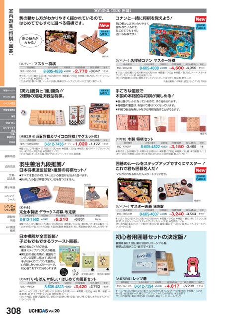 室内遊具(将棋・囲碁)駒の動かし方がわかりやすく描かれているので、はじめてでもすぐに遊べる将棋です。駒の動きがわかる![ビバリー]商品種別型式/BOG-002マスター将棋お申込番号8-605-4836対象年齢5歳以上使用例M価税抜¥3,200税抜価格¥2,770税込価格¥3,047単位1セット●寸法/360(幅)×240(奥)×60高)mm●質量/700g●材質/駒:ABS、ボード・シール・パッケージ:紙●包装数:1/6〈セット内容〉駒×40個、シール×98枚、簡単スタートブック、ボード(2つ折)、駒ケースコナンと一緒に将棋を覚えよう!駒の動かし方がわかりやすく描かれているので、はじめてでもすぐに遊べる将棋です!対象年齢6歳以上[ビバリー]商品種別型式/BOG-043名探偵コナンマスター将棋お申込番号8-605-4838M価税抜¥5,000税抜価格¥4,500税込価格¥4,950単位1セット●寸法/360(幅)×240(奥)×60(高)mm●質量/700g●材質/駒:ABS、ボード・スタートブック・パッケージ:紙●包装数:1/6〈セット内容〉駒×40個、簡単スタートブック、ボード(2つ折)、解説書、駒ケース©青山剛昌/小学館・読売テレビ・TMS1996「実力」勝負と「運」勝負!!2種類の短期決戦型将棋。対象年齢6歳以上手ごろな値段で木製の本格的な将棋が楽しめる!●駒と盤がセットになっているので、すぐ始められます。●将棋盤の裏面は、布張りで滑りにくくなっています。●木製の駒音を楽しみながら将棋を指すことができます。室内遊具(将棋・囲碁)学習ペーパークラフト・素材イベント用品学習支援用品保育安全・安心OA・サプライ用品文具・事務用品日用品装飾用品装飾用式典用品式典用品文集・文集・記念品記念品掲示用品掲示用品スタンプ・シールシールレクリエーション用品運動会運動会用品用品AV関連AV関連機器機器[池田工業社]5五将棋&サイコロ将棋(マグネット式)商品種別型式/000024810お申込番号M価税抜8-612-7455オープン税抜価格¥1,020税込価格¥1,122単位1セット●盤寸法/278幅)×157(奥)×1高)mm●質量/250g●材質/紙・ラバーマグネット・アクリル●STマーク取得品●包装数:1/12〈セット内容〉折りたたみ盤、駒マグネットシート、サイコロ、説明書羽生善治九段推薦!日本将棋連盟監修・推薦の将棋セット!●すべて木製なので「パチッ」という駒音が心地よく遊べます。●折りたたみ盤は蝶番がなく、机を傷つけません。使用例[幻冬舎]完全木製版デラックス将棋改定版お申込番号8-612-7562M価税抜¥6,900税抜価格¥6,210税込価格¥6,831単位1セット●盤寸法/345(幅)×315(奥)×10(高)mm●質量/1624g●材質/木●包装数:1/6〈セット内容〉木製折りたたみ盤、木製駒(書体:巻菱湖41枚)、木製駒台(駒入れ)、入門ガイド日本棋院が全面監修!子どもでもできるファースト囲碁。●盤の表は7×7の7路盤、裏はステップアップした9路盤。●黒と白の碁石を馬に、碁盤をニンジンの草原に見立て、馬で相手より多くのニンジンを囲むという親しみやすいストーリーで、初心者でもすぐに始められます。使用例(表面)使用例(裏面)[幻冬舎]いちばんやさしいはじめての囲碁セット商品種別型式/479208お申込番号M価税抜8-605-4823¥3,800税抜価格¥3,420税込価格¥3,762単位1セット[幻冬舎]木製将棋セット商品種別型式/479207お申込番号M価税抜8-605-4822¥3,500使用例税抜価格¥3,150税込価格¥3,465単位1個●磐寸法/345幅)×314奥)×6.5高)mm●質量/790g●材質/木、紙●包装数:1/12〈セット内容〉将棋駒(40枚、余り歩1枚)、折りたたみ式将棋盤、駒入れ、ガイド囲碁のルールをステップアップですぐにマスター!これで君も囲碁名人だ!マンガでわかるかんたんスタートブック付き。[ビバリー]商品種別型式/BOG-038マスター囲碁9路盤お申込番号8-605-4837M価税抜¥3,600対象年齢6歳以上使用例税抜価格¥3,240税込価格¥3,564単位1セット●寸法/360(幅)×240(奥)×60高)mm●質量/690g●材質/碁石:ポリエチレン、碁筒:ポリスチレン、ボード・スタートブック・パッケージ:紙●包装数:1/6〈セット内容〉碁石(リバーシ駒)白・黒×82個、碁笥(碁石ケース)×2個、かんたんスタートブック、ボード(両面)初心者用囲碁セットの決定版!碁盤は表に13路、裏に9路のリバーシブル盤、基礎と応用がこの1面で学べます。[大石天狗堂]レッツ碁商品種別型式/GS-139Sお申込番号8-612-7394M価税抜¥5,900税抜価格¥4,817税込価格¥5,298単位1セット●寸法/盤:312(幅)×290(奥)×12(高)mm、碁石:22(径)×6(厚)mm●質量/1.5kg●材質/盤:圧縮ボード、碁石:プラスチック●入門小冊子付●包装数:1〈セット内容〉盤、碁石(黒85個、白84個)、碁石ケース、ルールブック●パッケージ寸法/242(高)×242(幅)×34(奥)mm●質量/630g●材質/碁石:木碁盤:木、紙あそびかたブック:紙●包装数:1/12〈セット内容〉碁盤(両面使用)、碁石84個(黒い馬42個/白い馬42個)、あそびかたブック(16ページ)1冊308Vol.20