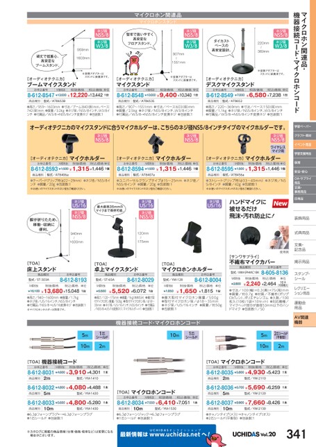 マイクロホン関連品・機器接続コード・マイクロホンコード学習ペーパークラフト・素材イベント用品学習支援用品保育安全・安心OA・サプライ用品文具・事務用品日用品装飾用品飾式典用品式典用品文集・文集・記念品記念品掲示用品掲示用品スタンプ・シールルレクリエーレクリエーション用品運動会動用品品AV関連機器ネジ径NS5/8ネジ径W3/8220mm69mm〜3※変換アダプターはスタンドに装着済です。ダイカストベースの高安定設計。[オーディオテクニカ]デスクマイクスタンドお申込番号8-612-8549M価税抜税抜価格¥7,000¥6,580¥7,238税込価格単位1台ネジ径NS5/8ネジ径W3/8907mm〜1551mm※変換アダプターはスタンドに装着済です。商品種別型式/AT8653B商品種別型式/AT8653S商品種別型式/AT8652●高さ/959〜1603mm●寸法/ブーム:840(長)mm、ベース:742径)mm●質量/3.2kg●ネジ径/NS5/8インチ、W3/8インチ●付属品/W3/8→NS5/8インチ変換ネジ●包装数:1●高さ/907〜1551mm●寸法/ベース:603(径)mm●質量/2.5kg●ネジ径/NS5/8インチ、W3/8インチ●付属品/W3/8→NS5/8インチ変換ネジ●包装数:1●高さ/220〜369mm●寸法/ベース:150(径)mm●質量/1.1kg●ネジ径/NS5/8インチ、W3/8インチ●付属品/W3/8→NS5/8インチ変換ネジ●包装数:1オーディオテクニカのマイクスタンドに合うマイクホルダーは、こちらのネジ径NS5/8インチタイプのマイクホルダーです。ネジ径NS5/8ネジ径NS5/8ネジ径NS5/8ワイヤレスマイク用[オーディオテクニカ]マイクホルダーお申込番号M価税抜税抜価格税込価格単位8-612-8593¥1,500¥1,315¥1,4461個[オーディオテクニカ]マイクホルダーお申込番号M価税抜税抜価格8-612-8594¥1,500¥1,315¥1,446税込価格単位1個[オーディオテクニカ]マイクホルダーお申込番号M価税抜税抜価格税込価格単位8-612-8595¥1,500¥1,315¥1,4461個商品種別型式/AT8406a商品種別型式/AT8407a商品種別型式/AT8456a●テーパードグリップ用(φ22〜29mm)●ネジ径/NS5/8インチ●質量/20g※お使いのマイクスタンドのネジ径をご確認ください。●包装数:1●ユニバーサルクランプタイプφ15〜25mm●ネジ径/NS5/8インチ●質量/20g●包装数:1※お使いのマイクスタンドのネジ径をご確認ください。●ストレートグリップ用(φ33〜40mm)●ネジ系/NS5/8インチ●質量/42g●包装数:1※お使いのマイクスタンドのネジ径をご確認ください。ネジ径U5/16ハンドマイクに被せるだけ飛沫・汚れ防止に!ネジ径U5/16ネジ径NS5/8120mm75mm〜1最大直径35mmのマイクまで保持可能。ネジ径U5/16ネジ径NS5/8940mm〜1600mm脚が折りたため、移動・収納に便利。[TOA]床上スタンド商品種別型式/ST-303Aお申込番号8-612-8193[TOA]卓上マイクスタンド[TOA]マイクロホンホルダー商品種別型式/ST-65Aお申込番号8-612-8029商品種別型式/YM-128お申込番号8-612-8004M価税抜¥16,100税抜価格税込価格¥13,680¥15,048単位1台M価税抜¥6,500税抜価格税込価格¥5,520¥6,072単位1台M価税抜¥1,850税抜価格税込価格¥1,650¥1,815単位1台●高さ/940〜1600mm●質量/1.7kg●ネジ径/U5/16インチ、NS5/8インチ●付属品/NS5/8→U5/16変換ネジ●包装数:1※マイクロホンホルダーは別売です。●高さ/120〜175mm●質量/1kg本体のみ)●最大取付マイクロホン質量/500g●取付マイクロホン径/φ18〜35mm●ネジ径/U5/16インチ、NS5/8インチ●付属品/NS5/8→U5/16変換ネジ、マイクホルダー×1●包装数:1●最大取付マイクロホン質量/500g●取付マイクロホン径/φ18〜35mm●ネジ径/U5/16インチ●質量/約50g●包装数:1使用例[サンワサプライ]不織布マイクカバー商品種別型式/MM-SPHMC1BKお申込番号8-605-8136単位1セットM価税抜¥2,800税抜価格税込価格¥2,240¥2,464(100枚入)●寸法/100(幅)×0.3(奥)×75(高)mm●質量/約0.7g●材質/不織布(ポリプロピレン)、ポリエチレンゴム●入数/100枚入(10枚/1袋×10セット)●対応機種/マイクヘッド部分が直径53mm以下のハンドマイク●包装数:1/50機器接続コード・マイクロホンコード10m1芯シールド5m10m1芯シールド2m5m10m2芯シールド(平衡型)2m[オーディオテクニカ]ブームマイクスタンド[オーディオテクニカ]マイクスタンド※変換アダプターはスタンドに装着済です。お申込番号M価税抜税抜価格8-612-8547¥13,000¥12,220¥13,442税込価格単位1台お申込番号M価税抜税抜価格8-612-8548¥10,000¥9,400¥10,340税込価格単位1台マイクロホン関連品マイクロホンスタンドネジ径NS5/8ネジ径W3/8959mm〜1603mm頑丈で低重心、高安定なブームスタンド。堅牢で扱いやすく高安定なフロアスタンド。[TOA]機器接続コードお申込番号M価税抜税抜価格税込価格8-612-8031¥4,600¥3,910¥4,3018-612-8032¥4,800¥4,080¥4,488型式/YM-1410型式/YM-1420商品種別2m商品種別5m8-612-8033¥5,650¥4,800¥5,280商品種別10m単位1本1本1本[TOA]マイクロホンコードお申込番号M価税抜税抜価格税込価格8-612-8034¥7,550¥6,410¥7,051単位1本10m[TOA]マイクロホンコードお申込番号M価税抜税抜価格税込価格8-612-8035¥5,800¥4,930¥5,423商品種別2m型式/YM-21108-612-8036¥6,700¥5,690¥6,259商品種別5m型式/YM-21208-612-8037¥8,900¥7,660¥8,426単位1本1本1本型式/YM-1430商品種別型式/YM-1530商品種別型式/YM-213010m●6.3φフォーンプラグ←→6.3φフォーンプラグ●1芯シールド●包装数:1●6.3φフォーンジャック→6.3φフォーンプラグ●1