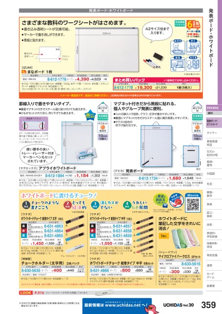 発表ボード・ホワイトボード学習支援用品理科発表ボード・ホワイトボードタイマータイマー黒板関連黒板関連用品用品SDGs・DGs・総合的な学習習国語・語・書写写外国語国算数・数・数学学音楽楽図工・工・美術術技術術家庭科・家庭科・学校給食校食保健体育・体球技技特別支援別道徳徳カードゲームム図書室書縄・離島はサービス対象外6沖本体裏面マグネット付はさむかくはるたてるA2サイズ位まで入ります。まとめ買いパック8-612-1778お申込番号¥19,300税抜価格※3枚必要となります。※1組単位申込。税込価格¥21,230単位1組(5枚入)本体裏面マグネット付10mm方眼入マグネット付きだから黒板に貼れる、個人やグループ発表に便利。●1cm方眼入りで図形、グラフ、文字が書きやすいです。●裏面にマグネット付きだからスチール面に掲示発表しやすいです。●タテヨコ自在の吊下げ紐付きです。330mm445mm[デビカ]発表ボード商品種別型式/063321お申込番号M価税抜8-612-1734オープン税抜価格¥1,680税込価格¥1,848裏面単位1セット●寸法/330(幅)×445高)×10厚)mm●暗線/10×10mm●質量/530g●本体裏面マグネット付●付属品/イレーザー付ボードマーカー(黒)、名前シール●包装数:1/10社会社会Movieチョークホルダー(太字用)、マイクロファイバークロスを除く。ホワイトボードに筆記した文字をきれいに消去!5枚入※中字6色セットのみ。うれしい6色展開長4特消しカスがでない長3特[ウチダ]ホワイトボードチョーク紙巻タイプ中字10本入商品種別型式/UWBCH-NP-BK-10型式/UWBCH-NP-R-10型式/UWBCH-NP-BL-10お申込番号8-631-48578-631-48588-631-4859黒赤青税込価格税抜価格¥1,050¥1,155M価税抜オープン(10本入)●寸法/10.5径)×75(長)mm●質量/約7.2g1本あたり)●材質/ライスワックス・顔料・耐油紙●日本製●包装数:1/10単位1組黒赤青緑黄橙※緑、黄、橙は6色セットのみ[ウチダ]ホワイトボードチョーク紙巻タイプ中字6色セットお申込番号M価税抜8-631-4866オープン税抜価格¥800商品種別型式/UWBCH-NP-6C税込価格¥880単位1組(6色各1本入)●寸法/10.5径)×75(長)mmライスワックス・顔料・耐油紙●日本製●包装数:1/10●質量/約7.2g1本あたり)●材質/[トレードワン]マイクロファイバークロス5Pセット商品種別型式/30755お申込番号8-630-5616単位1袋税抜価格¥300税込価格¥330M価税抜オープン(5枚入)●寸法(1枚あたり)/270(縦)×270(横)×2厚)mm●質量(1枚あたり)/16g●材質/ポリエステル85%、ナイロン15%●包装数:1/144※メーカー直送品です。返品はご容赦ください。上記商品は受注日から6営業日以内のお届けになります。さまざまな教科のワークシートがはさめます。発表ボード・ホワイトボード595mm単位1枚[IZUMI]6まなボード1枚商品種別型式/MB-02Lお申込番号M価税抜税抜価格税込価格8-612-1776オープン¥4,390¥4,829435mm表面スチレンパネル書き込み透明シート●寸法/595(横)×435(縦)mm●質量/300g●ボード厚/12mm●材質/スチレンボード●裏面マグネット付●包装数:1/5〈セット内容〉ボード、マーカー3本(黒・赤・青各1本)、イレーザー、スタンド●書き込み透明シートが交換可能。●マーカーで書き消しができます。●黒板に貼れます。本体裏面マグネット付10mm方眼入税込価格¥1,302単位1セット罫線入りで書きやすいタイプ。●裏面マグネット付きでスチール面に貼り付けても使えます。●ひもがセットされており、吊り下げても使えます。無塩素マグネット300mm420mmタテ・ヨコ両方使えます。分別廃棄可能で環境に優しいボードです。メッセージボードとしていろいろと書き込んで使えます。使い勝手の良いトレー・イレーザー付きマーカーペンもセットされています。[マグエックス]アプライホワイトボード商品種別型式/MAWB-3042B-Yお申込番号8-612-1894M価税抜¥1,700税抜価格¥1,184●寸法/300(幅)×420(高)×7(厚)mm(A3)●暗線/10×10mm(グレー色)●質量/本体:約320g●吊り下げ可●マグネット使用可●本体裏面マグネット付●付属品/吊り下げひも、イレーザー付マーカー、トレー、マグネット2個、吸盤フック●包装数:1/10ホワイトボードに書けるチョーク!とっても経済的※当社独自調査長2特黒赤青チョークのような書きごこち1特長[ウチダ]ホワイトボードチョーク紙巻タイプ太字10本入商品種別型式/UWBCH-BP-BK-10型式/UWBCH-BP-R-10型式/UWBCH-BP-BL-10お申込番号8-631-48638-631-48648-631-4865黒赤青税込価格税抜価格¥1,450¥1,595M価税抜オープン(10本入)●寸法/14.5(径)×90(長)mm●質量/約19.8g●材質/ライスワックス・顔料・耐油紙●日本製●包装数:1/6単位1組チョークホルダー(太字用)[祥碩堂]チョークホルダー(太字用)3本パックお申込番号M価税抜8-630-5635オープン税抜価格¥400税込価格¥440単位1パック(3本入)商品種別型式/S15417●寸法/14(径)×111(長)mm●包装数:1/10※ホワイトボードに筆記後、消去する際は、マイクロファイバークロスか固く絞った雑巾をご利用ください。ホワイトボードイレーザーでは消去できませんのでご注意ください。※ホワイトボードに筆記後、消去する際は、マイクロファイバークロスか固く絞った雑巾をご利用ください。ホワイトボードイレーザーでは消去