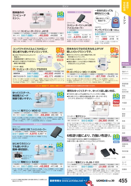 家庭科・学校給食ミシン学習支援用品理科発表ボード・発表ボード・ホワイトボードトタイマータイマー黒板関連黒板関連用品用品SDGs・DGs・総合的な学習習国語・語・書写写外国語国社会社会算数・数・数学学音楽楽図工・工・美術術技術術家庭科・学校給食保健体育・体球技技特別支援別道徳徳カードゲームム図書室書水平釜単位1台15mm159mm1[ジャガー]電子ミシン商品種別型式/KJM-2001/Wお申込番号M価税抜税抜価格税込価格8-613-4636オープン¥26,300¥28,930●寸法/約400幅)×152(奥)×265(高)mm●質量/約5.2kg●消費電力/70W●機能/模様数:9種10パターン(ボタンホール含む)、ボタンホール:4STEP、模様選択方法:ダイヤル式●付属品/ブラシ付きシームリッパー、ボビン(3個)、ファスナー押え、ボタン付け押え、ボタンホール押え、シームガイド、糸立て棒、ミシン針(14番×3本)、多用式ドライバー、補助糸立て棒、糸コマクッション、糸コマ押え(大小)●包装数:16枚送り歯により、力強い布送り。下糸の糸調子をお好みに調節できる垂直釜なので、糸締りが良く、縫い目をキレイに仕上げることができます。垂直釜[ジャノメ]電子ミシンMD512商品種別お申込番号M価税抜型式/MD5128-617-2886¥103,000税抜価格¥59,200税込価格¥65,120単位1台●寸法/410幅)×165奥)×265高)mm●質量/7.2kg●消費電力/55W●機能/直線、ジグザグ、模様数:14種類、水平全回転釜、手元スタートストップ●最高ぬい速度/毎分700針●付属品/ハードケース、取扱説明書、説明DVD●包装数:1関連別売品[ジャノメ]電子ミシンMD512用フットコントローラーお申込番号M価税抜税抜価格税込価格8-617-2889¥5,000¥4,970¥5,467単位1台●寸法/80(幅)×150(奥)×60(高)mm●質量/0.25kg●MD512対応●包装数:1ミシン関連別売品[ジャノメ]コンピューターミシンJ410用フットコントローラーお申込番号8-617-2888M価税抜¥5,000税抜価格税込価格¥4,970¥5,467単位1台●寸法/80幅)×150奥)×60高)mm●質量/0.2kg●J410対応●包装数:1一本あればとっても便利なミシン油。止めとしても有効です。[オザワ]サンランドミシン油100ccお申込番号8-617-2817税抜価格¥380M価税抜オープン●寸法/60(幅)×35(奥)×130(高)mm●質量/100g●包装数:1税込価格¥418単位1個四本糸ならではの丈夫な仕上がりが嬉しいロックミシンです。●初めての人でもやさしく使える機能が充実した実用性を備えたロックミシンです。●すそ引き縫いから巻きロックゴムテープ入れなど。●差動送り調節で、ニットなどの柔らかで伸縮性のある布地もきれいに仕上がります。[JUKI]ロックミシンMO-114DN商品種別型式/MO-114DNお申込番号M価税抜8-617-2805オープン税抜価格¥67,700沖縄・離島はサービス対象外税込価格¥74,470単位1台●寸法/315幅)×290奥)×290高)mm●質量/7.2kg●消費電力/100W●付属品/取扱説明DVD、フットコントローラー、針HA×1、11番2本、14番1本、ピンセット、掃除用ブラシ、ネット×2、ドライバー(小)、付属品袋、頭部カバー●包装数:1水平釜10mm170mm1簡単操作のコンピュータミシン。[ジャノメ]コンピューターミシンJ410商品種別型式/J410お申込番号M価税抜8-617-2885オープン税抜価格¥40,500税込価格¥44,550単位1台●寸法/406(幅)×174(奥)×298(高)mm●質量/5.4kg●消費電力/35W●機能/直線、ジグザグ、模様数:19種類、水平全回転釜、手元スタートストップ●最高ぬい速度/毎分700針●付属品/ハードケース、取扱説明書、説明DVD●包装数:1コンパクトだけどふところが広い!初心者でも使いやすいミシンです。沖縄・離島はサービス対象外水平釜9mm158mm9●上糸も下糸も「かんたん」セットで準備OK!液晶画面搭載で、操作もらくらく。●作品作りの幅を広げる実用ぬい模様20種を搭載。[ブラザー販売]コンピューターミシンPS202X商品種別お申込番号M価税抜税抜価格税込価格8-617-2882オープン8-617-2883本体のみ本体+フットコントローラー●寸法/413幅)×169(奥)×310(高)mm●質量/本体のみ:4.8kg、本体+フットコントローラー:5.2kg●消費電力/43W●機能/模様数:20種類、手元スタート/ストップ、水平全回転釜●付属品/カバー、付属押え●包装数:1¥40,550¥44,605¥45,171¥49,6881セット単位1台※メーカー直送品です。返品はご容赦ください。上記商品は受注日から8営業日以内のお届けになります。便利なゆっくりスタート、ゆっくり返し縫い対応。●下糸を引っ張り上げる必要がないワンハンドボビン搭載。●初心者にやさしい便利な自動糸通し器や、使いやすい手元スイッチで、好みのスピードで安定のソーイング。水平釜00mm140mm1ゆっくりスタート、無段階スピード制御で使いやすい。フットコントローラー付き。03mm140mm1垂直釜10mm170mm1[ジャノメ]電動ミシンS432商品種別型式/S432お申込番号8-617-2893M価税抜¥50,000税抜価格¥42,862税込価格¥47,148単位1台●寸法/385(幅)×150(奥)×294高)mm●質量/5.6kg●消費電力/60W●機能/直線、ジグザグ、模様(15種類)、垂直半回転釜、フットコントローラー仕様●付属品/フットコントローラー、ハードケース、取扱説明書●包装数:1[ジャガー]電動ミシンKJM-1101商品種別型式/KJM-1101お申込番号M価税抜8-617-2900オープン税抜価格¥21,000税込価