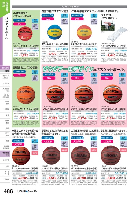 小学生用ゴムバスケットボール。小学生用5号ゴム直径220mm球周690〜710mm[ミカサ]ミニバスケットボール(5号球)商品種別型式/BB534C-RBBKお申込番号8-617-4940M価税抜¥2,100税抜価格税込価格¥1,672¥1,839単位1個●材質/ゴム●直径/220mm●球周/685〜700mm●質量/465〜495g●5号、小学生用●要空気入れ●包装数:1/20授業用ミニバスの定番。小学生用5号ゴム直径220mm球周685〜700mmバスケットボール表面が特殊スポンジ加工。ソフトな感覚でバスケットが楽しくなります。幼児・小学生用5号EVA幼児・小学生用5号EVA直径220mm球周690〜710mm直径220mm球周690〜710mmバスケットリング用ネット。[ミカサ]スマイルバスケットボール(5号球)[ミカサ]スマイルバスケットボール(5号球)商品種別型式/SB5-YBLお申込番号8-617-4343商品種別型式/SB512-YOお申込番号8-617-4793M価税抜¥3,000税抜価格税込価格¥2,400¥2,640単位1個M価税抜¥3,000税抜価格税込価格¥2,400¥2,640単位1個●材質/EVA●直径/220mm●球周/690〜710mm●質量/約315g●色/ブルー×イエロー●5号、幼児・小学生用●完成品●包装数:1/12●材質/EVA●直径/220mm●球周/690〜710mm●質量/約315g●色/イエロー×オレンジ●5号、幼児・小学生用●完成品●包装数:1/12使用例[トーエイライト]スクールバスケットリングネット商品種別型式/B3814お申込番号8-617-4990M価税抜¥1,800税抜価格税込価格¥1,440¥1,584(2枚入)●質量/140g●材質/ポリエステル●一般、ミニバス用リング対応●2枚1組●包装数:1単位1組ジウジアーロデザインのバスケットボール。小学生用5号ゴム中学・高校・一般女子用6号ゴム直径220mm球周685〜700mm中学・高校・一般男子用7号ゴム直径232mm球周715〜730mm直径245mm球周750〜770mm[モルテン]ミニバスケットボールゴム(5号球)[モルテン]ジウジアーロゴムバスケ(5号球)OI[モルテン]ジウジアーロゴムバスケ(6号球)OI[モルテン]ジウジアーロゴムバスケ(7号球)OI商品種別型式/B5C2000お申込番号8-617-4646商品種別型式/BGR5-OIお申込番号8-617-4588商品種別型式/BGR6-OIお申込番号8-617-4589商品種別型式/BGR7-OIお申込番号8-617-4590M価税抜¥2,800税抜価格税込価格¥2,287¥2,515単位1個M価税抜税抜価格税込価格¥2,800¥2,182¥2,400単位1個M価税抜¥2,900税抜価格税込価格¥2,274¥2,501単位1個M価税抜税抜価格税込価格¥3,000¥2,354¥2,589単位1個●材質/ゴム●直径/220mm●球周/685〜700mm●質量/465〜495g●5号、小学生用●要空気入れ●包装数:1/20●材質/ゴム●直径/220mm●球周/685〜700mm●質量/465〜495g●5号、小学生用●要空気入れ●包装数:1/20●材質/ゴム●直径/232mm●球周/715〜730mm●質量/510〜550g●6号、中学女子用●要空気入れ●包装数:1/20●材質/ゴム●直径/245mm●球周/750〜770mm●質量/580〜620g●7号、中学男子用●要空気入れ●包装数:1/20全国ミニバスケットボール大会唯一の公式試合球。授業としても、試合としても最適のボールです。小学生用バスケットボール検定球。直径小学生用5号人工皮革220mm球周685〜700mm検定球小学生用5号人工皮革直径220mm球周685〜700mm検定球人工皮革の検定球でこの価格。授業用に最適なボールです。日本バスケットボール協会検定6号。中学・高校・一般女子用6号直径日本バスケットボール協会検定7号。中学・高校・一般男子用7号直径人工皮革人工皮革240mm球周715〜730mm検定球250mm球周750〜770mm検定球[モルテン]ミニバスケットボール(5号球)[ミカサ]バスケットボール検定球(5号球)[ミカサ]バスケットボール検定球(6号球)[ミカサ]バスケットボール検定球(7号球)商品種別型式/B5C5000お申込番号8-617-4642商品種別型式/CF500お申込番号8-617-4586商品種別型式/CF600お申込番号8-617-4611商品種別型式/CF700お申込番号8-617-4610M価税抜¥5,600税抜価格税込価格¥4,392¥4,831単位1個M価税抜¥4,100税抜価格税込価格¥3,512¥3,863単位1個M価税抜¥4,200税抜価格税込価格¥3,598¥3,957単位1個M価税抜¥4,300税抜価格税込価格¥3,684¥4,052単位1個●材質/人工皮革●直径/220mm●球周/685〜700mm●質量/465〜495g●5号、小学生用●検定球●完成品●包装数:1/12●材質/人工皮革●直径/220mm●球周/685〜700mm●質量/495g●5号、小学生用●検定球●完成品●包装数:1/12●材質/人工皮革●直径/240mm●球周/715〜730mm●質量/550g●6号、中学・高校・一般女子用●検定球●完成品●包装数:1/12●材質/人工皮革●直径/250mm●球周/750〜770mm●質量/620g●7号、中学・高校・一般男子用●検定球●完成品●包装数:1/12保健体育・バスケットボール球技学習支援用品理科発表ボード・発表ボード・ホワイトボードタイマータイマー黒板関連黒板関連用品用品SDGs・SDG総合的な学習国語・国語書写書写外国語外国語社会社会算数・算数数学数学音楽音楽図工・図工美術美術技術技術家庭科・家庭科・学校給食学校給食保健体育・球技特別支援特別支道徳道徳カードカゲーム図書室図書室486Vol.20