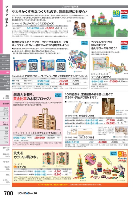 ブロック・積み木やわらかく丈夫なつくりなので、低年齢児にも安心!ジェリーブロックスは触感がぐにゃぐにゃとやわらかく、舐めても噛んでも安心なゴムの素材で作られています。そのため、子どもが踏んでも痛くなく、安全に遊ぶことができます。のばしたりねじったりつぶしたり!変幻自在のブロックにたくさん触ってみましょう。使用例[マスセット]ジェリーブロックス(30ピース)商品種別型式/90377お申込番号8-614-2398M価税抜¥5,450税抜価格¥5,380税込価格¥5,918単位1セット対象年齢2歳以上●寸法/小ブロック:30(幅)×30(奥)×25(高)mm●質量/1.5kg●材質/ブロック本体:エラストマー、中身(星・ブロック)ABS樹脂、中身(砂):砂、中身(ビーズ)発泡材、収納ケース:ポリプロピレン●包装数:1〈セット内容〉ブロック×30ピース※この商品は輸入品です。在庫切れの場合は、納期がかかる場合がございます。世界的に大人気!ナンバーブロックスのユニークなキャラクターたちと一緒にさんすうの学習をしよう!!●幼児期には、カウンターや大きさ比べ、パターン作りや分類など数の基礎学習に。●小学生には、たし算やひき算など基本的な計算はもちろん、掛け算、面積、体積など年齢や学年に合わせて長く幅広く使えます。●●MovieMovie対象年齢3歳以上カラフルブロックを組み合わせて色んなコースを作ろう!集中力やドミノを慎重に置くことによる手先の器用さを養います。対象年齢3歳以上[クラシックワールド]マーブルブロックスお申込番号M価税抜税抜価格税込価格単位8-614-2358¥7,000¥7,000¥7,7001セット制作例商品種別型式/CL20211●材質/木●包装数:1〈セット内容〉ブロック×62個●セット内容[hand2mind]マスリンクキューブ・ナンバーブロックス算数アクティビティセット税込価格¥4,400¥6,322単位1セットお申込番号8-618-15828-618-1583M価税抜オープン税抜価格¥4,000¥5,748商品種別型式/93417-J型式/94477-J1-1011-20●●●寸法/キューブサイズ:20mm(1辺)●材質/プラスチック、紙●包装数:1/12〈セット内容〉❶マスリンクキューブ×100個、数字プレート×11個など❷マスリンクキューブ×155個、数字プレート×10個など創造力を養う、黄金比率の木製ブロック!15のビルディングスティックがたっぷり500ピース入っているので3:1:自由に組み合わせて遊ぶことができます。対象年齢1.5歳以上100%自然木、宮崎県産の杉を使った軽くて柔らかい手触りの積み木です。からからつみき●●108作品例(各60枚ずつ使用)税抜価格¥7,796税込価格¥8,575¥15,592¥17,151単位1セット■からからつみき54()●27mm9mm54mmmm8019mm■からからつみき10827mmM価税抜¥8,663商品種別お申込番号からからつみき108×240ピース8-618-1188からからつみき108×480ピース8-618-1189¥17,325●●[からからつみき]からからつみき「コロカラつみき」は、からからつみきで作った小さな坂道のつみきです。からからつみき54を上手く使ってビー玉が転がる道を作れます。●コロカラつみき作品例[からからつみき]コロカラつみきお申込番号8-618-1192●●包装数:1/12〈セット内容〉コロカラつみき×20ピース+からからつみき54×40ピース+ビー玉4個※ビー玉の色は変更となる場合がございます。¥6,3601セット税込価格¥6,996単位M価税抜¥7,067税抜価格●包装数:❸1/6、❹1/4制作例沖縄・離島はサービス対象外対象年齢3歳以上8mmm120mな夫丈ハニカム構造mm42単位1セット[クラシックワールド]M価税抜お申込番号8-618-1543¥20,600ビルディングスティック500ピース税抜価格¥20,600税込価格¥22,660単位1セット商品種別型式/CL3577●寸法/ブロック:30(幅)×150(奥)×10(高)mm●質量/6.9kg●材質/木製●ブロック数/500ピース●布袋●包装数:1洗えるカラフル積み木。[ジーピー]ビオブロ商品種別基本セットたっぷりセット基本セット(ハローボックス)、100個入りたっぷりセット(ビックボックス)、340個入り8-618-1852¥19,8008-618-1851M価税抜¥7,800税抜価格¥7,800税込価格¥8,580¥19,800¥21,780お申込番号30mmmm05110mm●寸法/ブロック:24幅)×120(奥)×8(厚)mm●材質/木材、再生プラスチック(PET)混合●包装数:1〈セット内容〉基本セット:5色(赤・黄・緑・青・オレンジ)各20個入り、たっぷりセット:10色(赤・黄・緑・青・オレンジ・ピンク・紫・黒・白・ベージュ)各34個入り基本セットたっぷりセット※メーカー直送品です。返品はご容赦ください。上記商品は受注日から8営業日以内のお届けになります。700Vol.20ブロック・積み木学習ペーパークラフト・素材イベント用品学習支援用品保育安全・安心OA・サプライ用品文具・事務用品日用品運動・運屋外遊具屋外遊室内遊具乳幼児乳児おもちゃごっこごっあそびあそびままごとブロック・積み木電車車知育育玩具具カードカーあそびあそびパズルパル造形あそび・造形あそび・工作工作書籍・CD・籍DVDDVプレゼント乳幼児乳幼児用品用品備品備品セーフティ―用品用品