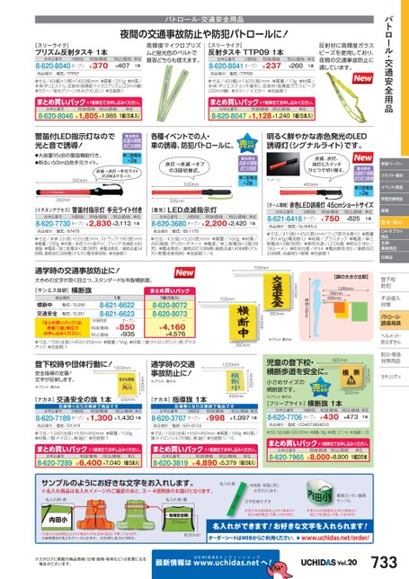 パトロール・交通安全用品学習ペーパークラフト・素材イベント用品学習支援用品保育安全・安心OA・サプライ用品文具・事務用品日用品登下校下防犯犯不法侵入法対策策パトロール・誘導用具ヘルメット・防災ずきん防災・緊急対策用品策セキュリティィ警笛付LED指示灯なので光と音で誘導!●大音量95dBの警笛機能付き。●明るい50lm白色手元ライト。電池寿命点滅54時間点灯28時間単二乾電池×2個点滅→点灯→手元ライトの3WAYモード。550mm350mm各種イベントでの人・車の誘導、防犯パトロールに。明るく鮮やかな赤色発光のLED誘導灯(シグナルライト)です。点灯→点滅→オフの3段切替式。530mm335mm電池寿命点滅140時間点灯30時間単二乾電池×2個点滅、点灯、消灯とスイッチひとつで切り替え。イメージ450mm電池寿命点滅約51時間点灯約25時間単三乾電池×2個パトロール・交通安全用品夜間の交通事故防止や防犯パトロールに![スリーライク]プリズム反射タスキ1本お申込番号M価税抜8-620-8040オープン税抜価格¥370税込価格¥407単位1本高輝度マイクロプリズムと蛍光色のベルトで昼夜どちらも使えます。[スリーライク]反射タスキTTP091本お申込番号M価税抜8-620-8041オープン税抜価格¥237税込価格¥260単位1本反射材に高輝度ガラスビーズを使用しており、夜間の交通事故防止に適しています。商品種別型式/TTP07●寸法/40幅)×1厚)×1400高)mm●質量/29.5g●材質/本体:ポリエステル、反射材:高輝度マイクロプリズム(20mm幅)●カラー/蛍光グリーン(きみどりに近い)●包装数:1商品種別型式/TTP09●寸法/40(幅)×1400(高)mm●質量/10g●材質/本体:ポリエステル(不織布)、反射材:高輝度ガラスビーズ(20mm幅)●カラー/イエロー●包装数:1まとめ買いパック※1組単位申込。8-620-80461組(5本入)¥1,805¥1,985お申込番号税込価格税抜価格単位まとめ買いパック※1組単位申込。8-620-80471組(5本入)¥1,128¥1,240お申込番号税抜価格税込価格単位[イチネンアクセス]警笛付指示灯手元ライト付きお申込番号M価税抜税抜価格税込価格8-620-7730オープン¥2,830¥3,113単位1本[豊光]LED点滅指示灯お申込番号M価税抜税抜価格税込価格8-620-3680オープン¥2,200¥2,420単位1本商品種別型式/87479商品種別型式/BS-1170●寸法/本体:33径)×550(長)mm、ストラップ:190長)mm●質量/290g●材質/赤色ライト部:PVC、グリップ・先端部:ABS樹脂●電源/単二乾電池×2個(別売)●電池寿命/連続点滅54時間、連続点灯28時間(アルカリ電池使用時)●包装数:1●寸法/43(径)×530(長)mm●質量/160g●材質/ABS樹脂、ポリカーボネート●電源/単二乾電池×2個(別売)●電池寿命/連続点灯30時間・連続点滅140時間(アルカリ乾電池使用時)●包装数:1/6[オーム電機]赤色LED誘導灯45cmショートサイズお申込番号M価税抜8-621-6416オープン税抜価格¥750税込価格¥825単位1本商品種別型式/SL-W45-3●寸法/41(径)×450(長)mm(フック部分は除く)●質量/約140g(電池除く)●材質/プラスチック●電源/単三乾電池×2個(別売)●使用光源/LED6個●明るさ(約)/18ルーメン●防水仕様/IPX4●電池寿命(約)/連続点灯25時間、点滅時51時間●包装数:1【旗の大きさ比較】1200mm700mm600mm身長160cm450mm350mm450mm※プリント:表のみ350mm700mm700mm通学時の交通事故防止に!大きめの文字が良く目立つ、スタンダードな布製横断旗。[サンエス技研]商品種別横断旗横断中交通安全型式/O-250型式/O-251「まとめ買いパック」は、各種「1組」単位でお申し込みください。1本8-621-66228-621-6623オープン¥850¥935M価税抜税抜価格税込価格まとめ買いパック1組(5本入)8-620-80728-620-8073ー¥4,160¥4,576●寸法/700(全長)×450×350mm●質量/50g●材質/旗:テトロンポンジ、柄:プラスチック●包装数:1300mm300mm600mm児童の登下校・横断歩道を安全に。小さめサイズの横断旗です。※プリント:表のみ[フリーブライト]横断旗1本お申込番号M価税抜8-620-7706オープン税抜価格¥430税込価格単位¥4731本商品種別型式/CD4073804010●寸法/600全長)×300×300mm●質量/60g●材質/ビニール●包装数:1/20まとめ買いパック※1組単位申込。8-620-79651組20本¥8,000¥8,800お申込番号税抜価格税込価格単位550mm450mm550mm450mm登下校時や団体行動に!1200mm安全指導の定番!文字が反射します。※プリント:表のみ通学時の交通事故防止に!※プリント:表のみ1200mm[ナカネ]交通安全の旗1本在庫無次第終了商品[ナカネ]指導旗1本在庫無次第終了商品お申込番号M価税抜税抜価格税込価格単位8-620-7189オープン¥1,300¥1,4301本お申込番号M価税抜8-620-3707オープン税抜価格¥998税込価格単位¥1,0971本商品種別型式/D1319商品種別型式/631-0133●寸法/1200(全長)×550×450mm●質量/100g●材質/旗:ナイロン、柄:塩ビ●包装数:1●寸法/1200全長)×550×450mm●質量/100g●材質/旗:ナイロン(シルク印刷)、柄:塩ビ●包装数:1/10まとめ買いパック※1組単位申込。8-620-72891組(5本入)¥6,400¥7,040お申込番号税込価格税抜価格単位まとめ買いパック※1組単位申込。8-620-38191組(5本入)¥4,890¥5,379お申込番号税抜価格税込価格単位サンプルのようにお好きな文字をお入れします。※名入れ商品は名入れイメージのご確認のあと、3〜4週間後のお届けとなります。名入れ例名入れ例