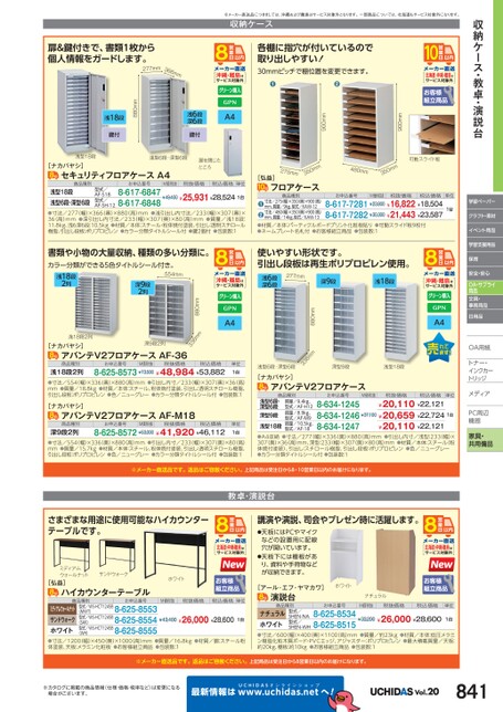※メーカー直送品につきましては、沖縄および離島はサービス対象外となります。一部商品については、北海道もサービス対象外になります。収納ケース沖縄・離島はサービス対象外277mm浅6段深6段深9段浅18段沖縄・離島はサービス対象外収納ケース・教卓・演説台学習ペーパークラフト・素材イベント用品学習支援用品保育安全・安心OA・サプライ用品文具・事務用品日用品OA用紙用紙トナー・トナー・インクカーインクカートリッジメディアィアPC周辺辺機器器家具・共用備品各棚に指穴が付いているので取り出しやすい!30mmピッチで棚位置を変更できます。●●北海道・沖縄・離島はサービス対象外900mm900mm275mmmm053480mmmm053可動スライド板お申込番号M価税抜税抜価格税込価格8-617-7281¥23,8008-617-7282¥30,300¥16,822¥18,504¥21,443¥23,587単位1台フロアケース商品種別寸法/275幅)×350奥)×900(高)mm、質量/9kg、型式/KAW-12寸法/480幅)×350奥)×900(高)mm、質量/14kg、型式/KAW-13●●[弘益]●材質/本体:パーティクルボードプリント化粧板貼り●可動スライド板9枚付●ネームプレート名札付●お客様組立商品●包装数:1使いやすい形状です。引出し段板は再生ポリプロピレン使用。A4深型9段浅型18段880mm336mm浅型6段・深型6段[ナカバヤシ]アバンテV2フロアケース商品種別お申込番号M価税抜税抜価格税込価格単位質量/9.4kg、型式/AF-H12質量/8.9kg、型式/AF-M9質量/10.5kg、型式/AF-188-634-12458-634-12468-634-1247浅型6段・深型6段深型9段浅型18段●A4収納●寸法/277(幅)×336(奥)×880(高)mm●引出し内寸/浅型:233(幅)×307(奥)×36(高)mm、深型:233幅)×307奥)×80高)mm●材質/本体:スチール(粉体焼付塗装)、引出し:スチロール樹脂、引出し段板:ポリプロピレン●色/ニューグレー●カラー分類タイトルシール付●包装数:1¥20,110¥22,121¥20,659¥22,724¥20,110¥22,121¥37,1001台366mm沖縄・離島はサービス対象外A4浅6段深6段鍵付扉&鍵付きで、書類1枚から個人情報をガードします。277mm880mm浅18段鍵付浅型18段[ナカバヤシ]セキュリティフロアケースA4浅型6段・深型6段扉を閉じたところ商品種別お申込番号M価税抜税抜価格税込価格単位型式/AF-S18型式/AF-SH-128-617-68478-617-6848浅型18段浅型6段・深型6段●寸法/277(幅)×366(奥)×880(高)mm●浅引出し内寸法/233(幅)×307(奥)×36(高)mm●深引出し内寸法/233(幅)×307(奥)×80(高)mm●質量/浅18段:11.8kg、浅6深6段:10.5kg●材質/本体:スチール・粉体焼付塗装、引出し:透明スチロール樹脂、引出し段板:ポリプロピレン●カラー分類タイトルシール付●鍵2個付●包装数:1¥49,00¥25,931¥28,5241台書類や小物の大量収納、種類の多い分類に。カラー分類ができる5色タイトルシール付き。554mmA4880mm336mm深9段2列深9段2列浅18段2列浅18段2列[ナカバヤシ]アバンテV2フロアケースAF-36商品種別お申込番号M価税抜税抜価格税込価格8-625-8573¥73,500¥48,984¥53,882浅18段2列●寸法/554(幅)×336(奥)×880(高)mm●引出し内寸/233(幅)×307(奥)×36高)mm●質量/18.8kg●材質/本体:スチール、粉体焼付塗装、引出し:透明スチロール樹脂、引出し段板:ポリプロピレン●色/ニューグレー●カラー分類タイトルシール付●包装数:1単位1台[ナカバヤシ]アバンテV2フロアケースAF-M18商品種別お申込番号M価税抜税抜価格税込価格8-625-8572¥63,000¥41,920¥46,112深9段2列●寸法/554(幅)×336(奥)×880(高)mm●引出し内寸/233(幅)×307(奥)×80高)mm●質量/15.7kg●材質/本体:スチール、粉体焼付塗装、引出し:透明スチロール樹脂、引出し段板:ポリプロピレン●色/ニューグレー●カラー分類タイトルシール付●包装数:1単位1台※メーカー直送品です。返品はご容赦ください。上記商品は受注日から8・10営業日以内のお届けになります。さまざまな用途に使用可能なハイカウンターテーブルです。ミディアムウォールナット[弘益]サンドウォークホワイトハイカウンターテーブル商品種別お申込番号M価税抜税抜価格税込価格単位型式/WS-HCT1245B(MWT)型式/WS-HCT1245B(SAK)型式/WS-HCT1245B(WH)ミディアムウォールナットサンドウォークホワイト●寸法/1200(幅)×450奥)×1000(高)mm●質量/16.8kg●材質/脚:スチール粉体塗装、天板:メラミン化粧板●お客様組立商品●包装数:18-625-85538-625-85548-625-8555¥43,400¥26,000¥28,6001台教卓・演説台講演や演説、司会やプレゼン時に活躍します。北海道・沖縄・離島はサービス対象外●天板にはPCやマイクなどの設置用に配線穴が開いています。●天板下には棚板があり、資料や手荷物などが収納できます。[アール・エフ・ヤマカワ]演説台商品種別北海道・沖縄・離島はサービス対象外ホワイトナチュラルお申込番号M価税抜税抜価格税込価格単位型式/SHEN-NA型式/SHEN-WH8-625-85348-625-8515ナチュラルホワイト●寸法/600(幅)×400(奥)×1100(高)mm●質量/約23kg●材質/本体:低圧メラミン樹脂化粧木質ボード・PVCエッジ、アジャスター:ポリプロピレン●最大積載質量/天板:約20kg、棚板:約10kg●お客様組立商品●包装数:1¥33,200¥26,000¥28,6001台※メーカー直送品です。返品はご容赦ください。上記商品は受注日から8営業日以内のお届けになります。※カタログに掲載の商品情報(仕様・価格・税率など)は変更に
