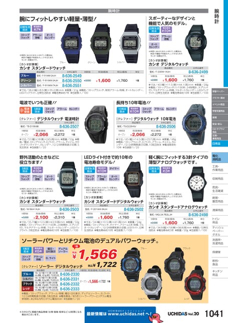腕時計学習ペーパークラフト・素材イベント用品学習支援用品保育安全・安心OA・サプライ用品文具・事務用品日用品電化消耗品工具・具・作業用品業収納用品納雨具・具・生活雑貨活飼育・育・園芸用品芸清掃用品掃トイレレ用品品ティッシュティッシュペーパー・パタオルル洗面所・洗面所・洗濯用品濯保健室保健室飲料・料・食品食品キッチンキッチン用品品腕にフィットしやすい軽量・薄型!腕時計日常生活防水ストップウォッチ電池寿命約7年アラーム・時報オートカレンダー※時計にあらかじめセットされている電池は、時計の機能や性能をチェックするためのモニター用電池です。[カシオ計算機]カシオスタンダードウォッチブルースポーティーなデザインと機能で人気のモデル。電池寿命約10年アラーム・時報日常生活防水ストップウォッチオートカレンダー※時計にあらかじめセットされている電池は、時計の機能や性能をチェックするためのモニター用電池です。[カシオ計算機]カシオデジタルウォッチ商品種別グリーンシルバーお申込番号M価税抜税抜価格税込価格単位型式/F-200W-1AJH商品種別型式/F-91WM-2AJH型式/F-91WM-3AJHブルーグリーンシルバー●寸法/38.2(幅)×8.5(奥)×35.2高)mm●質量/21g●機能/ストップウォッチ、時刻アラーム・時報、オートカレンダー、LEDバックライト、日常生活防水●電池寿命約7年●包装数:1/1008-636-25498-636-25508-636-2551¥1,600型式/F-91WM-7AJH¥1,760¥2,0001個お申込番号8-636-2499M価税抜¥2,000税抜価格¥1,600税込価格¥1,760単位1個●寸法/40幅)×11.5(奥)×44.1(高)mm●質量/28g●機能/ストップウォッチ(1/100秒、24時間計、スプリット付)、マルチアラーム・時報、フルオートカレンダー、LEDバックライト、日常生活防水●電池寿命約10年●包装数:1/100電波でいつも正確!!電波受信5気圧防水ストップウォッチアラームカレンダー長持ち10年電池!!10気圧防水電池寿命約10年ストップウォッチアラームカレンダー[クレファー]デジタルウォッチ電波時計商品種別型式/TE-D190-BKお申込番号8-636-2507[クレファー]デジタルウォッチ10年電池商品種別型式/TS-D229-NVお申込番号8-636-2506M価税抜オープン税抜価格¥2,066税込価格¥2,272単位1個●寸法/51(幅)×18奥)×245(高)mm●質量/53g●機能/電波、ストップウォッチ、ELライト、アラーム、チャイム、カウントダウンタイマー、カレンダー、12/24時間制表示切替、5気圧防水●包装数:1/20M価税抜オープン税抜価格¥2,066税込価格¥2,272単位1個●寸法/45(幅)×14.5(奥)×257(高)mm●質量/48g●機能/ストップウォッチ、ELライト、アラーム、チャイム、カレンダー、12/24時間制表示切替、10気圧防水●電池寿命約10年●包装数:1/20野外活動のときなどに役立ちます!LEDライト付きで約10年の電池寿命モデル!軽く腕にフィットする3針タイプの薄型アナログウォッチです。5気圧防水ストップウォッチ電池寿命約10年アラーム・時報オートカレンダー日常生活防水ストップウォッチ電池寿命約10年アラーム・時報タイマーオートカレンダー日常生活防水電池寿命約3年※時計にあらかじめセットされている電池は、時計の機能や性能をチェックするためのモニター用電池です。※時計にあらかじめセットされている電池は、時計の機能や性能をチェックするためのモニター用電池です。[カシオ計算機]カシオスタンダードウォッチ[カシオ計算機]カシオスタンダードデジタルウォッチ商品種別型式/W-96H-1AJHお申込番号8-636-2503商品種別型式/F-201WA-9AJHお申込番号8-636-2502M価税抜¥3,000税抜価格¥2,100税込価格¥2,310単位1個M価税抜¥2,000税抜価格¥1,600税込価格¥1,760単位1個●寸法/35.7幅)×12.5(奥)×43.9(高)mm●質量/32g●機能/ストップウォッチ(1/100秒、24時間計、スプリット付)、マルチアラーム・時報、フルオートカレンダー、LEDバックライト、5気圧防水●電池寿命約10年●包装数:1/100●寸法/34幅)×10.5(奥)×41(高)mm●質量/24g●機能/ストップウォッチ、タイマー、アラーム5本・時報、フルオートカレンダー、12/24時間制表示切替、LEDライト、日常生活防水●電池寿命約10年●包装数:1/100※時計にあらかじめセットされている電池は、時計の機能や性能をチェックするためのモニター用電池です。[カシオ計算機]カシオスタンダードアナログウォッチ商品種別型式/MQ-24-7B2LLJHお申込番号8-636-2498M価税抜¥2,000税抜価格¥1,600税込価格¥1,760単位1個●寸法/34.9幅)×7.8奥)×38.8高)mm●機能/日常生活防水●電池寿命約3年●質量/20g●包装数:1/100ソーラーパワーとリチウム電池のデュアルパワーウォッチ。5気圧防水ストップウォッチ電池寿命約5年アラーム・時報曜日・日付表示デュアルソーラーELライト1個税抜¥1,566税込¥1,722[クレファー]ソーラーデジタルウォッチ商品種別お申込番号M価税抜税抜価格税込価格単位寸法/44.7幅)×19.1奥)×240高)mm、質量/45.g、型式/TE-D052-BL8-636-23308-636-23318-636-23328-636-2333ブルーシルバーブラックレッド●機能/ストップウォッチ、アラーム・時報、曜日・日付表示、デュアルソーラー、ELライト、12/24時間制表示切替、5気圧防水●電池寿命/約5年(ソーラーパワ